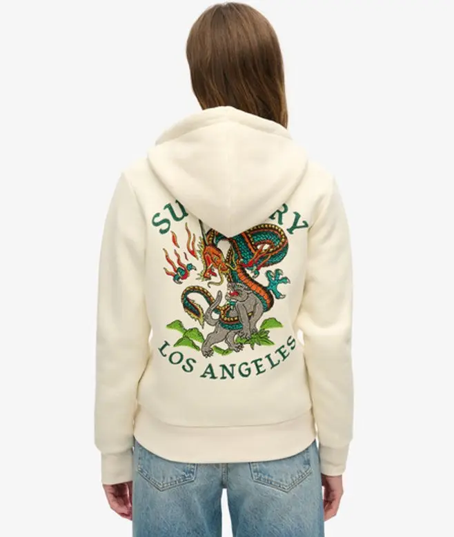 Superdry Women's Tattoo Rhinestone Zip Hoodie Cream / Rice White -