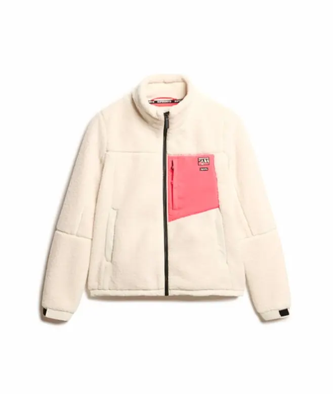 Superdry Women's Classic Logo Badge Non Hooded Borg Jacket, White and Coral,