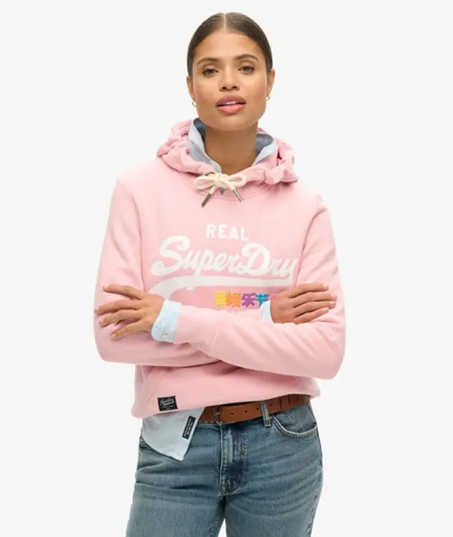 Superdry Women's Vintage Logo Pop Hoodie Pink / Coral Blush -