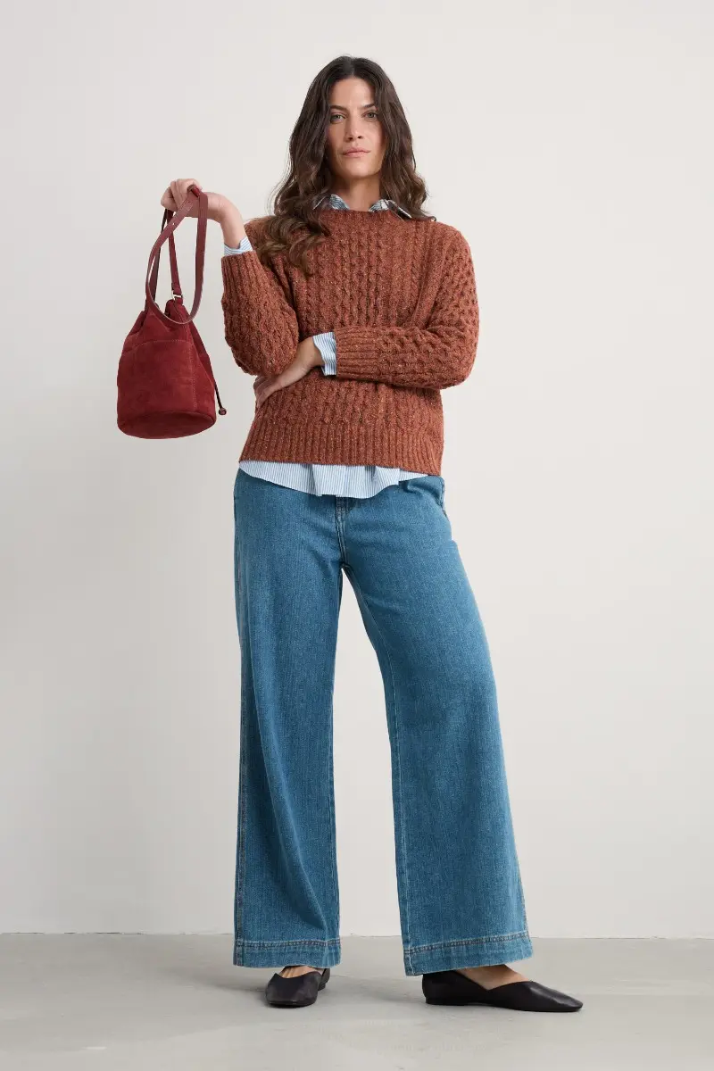 Wide-leg jeans made from no-stretch denim with added hemp for a soft and supple handfeel. A back yoke and reshaped rise for a flattering fit.