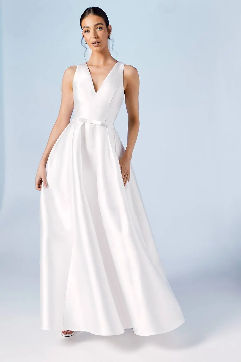 Coast Women's Plunge Neck Bow Waist Maxi Wedding Dress With Pockets in Ivory