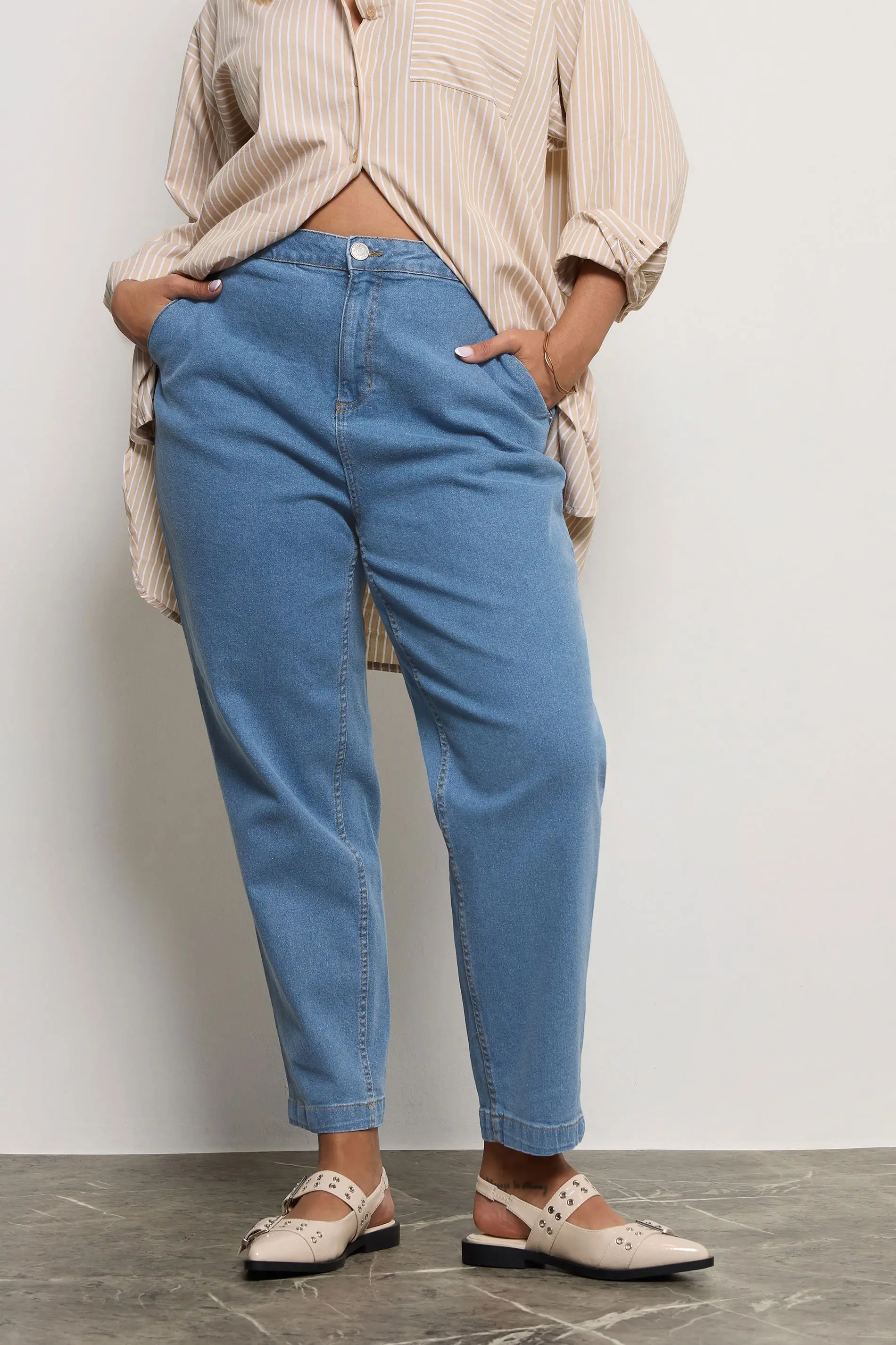 Yours Plus Size Mid Blue Stretch Denim Barrel Jeans Size 30-32