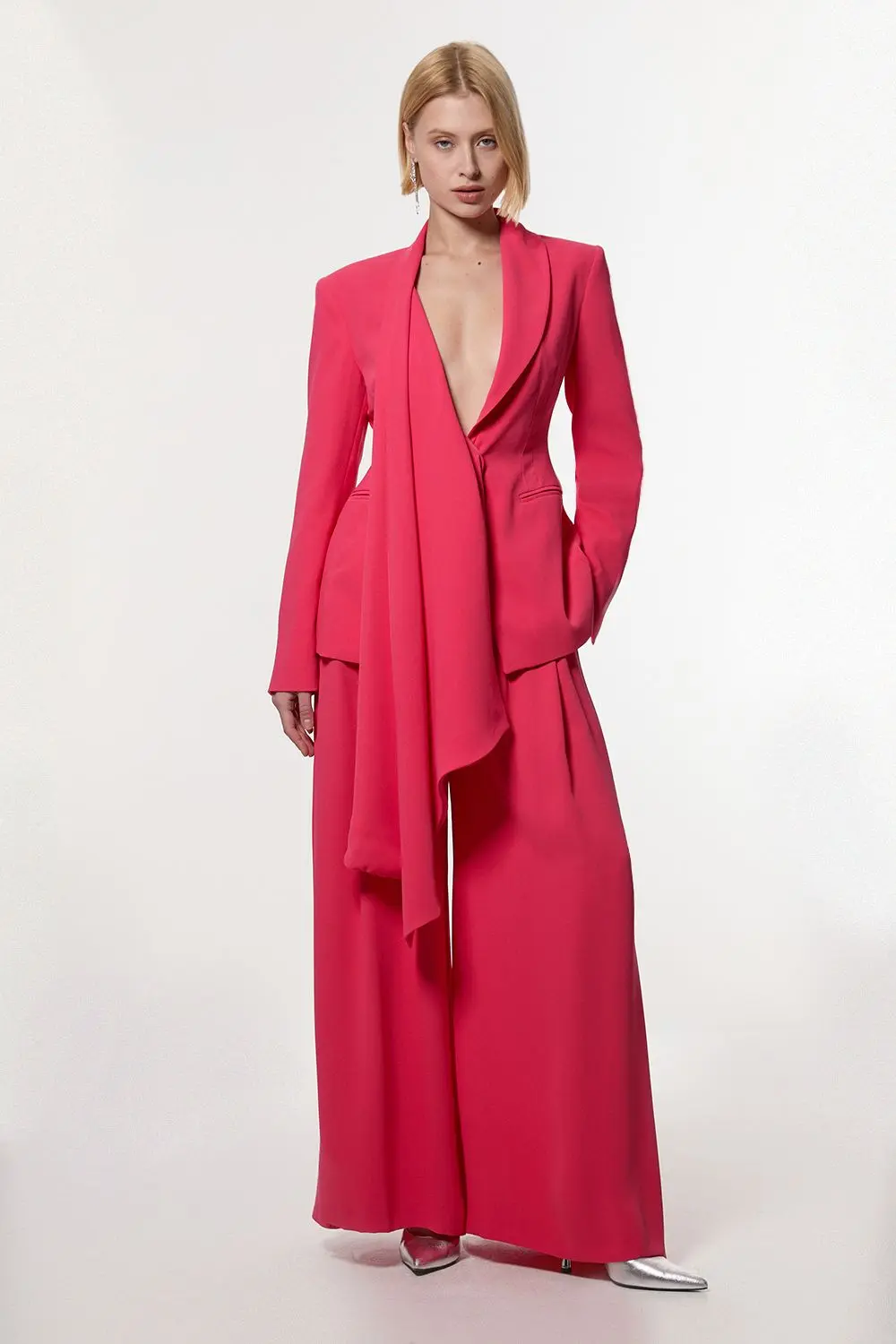 Soft Tailored Waist Wide Leg Trousers - Pink