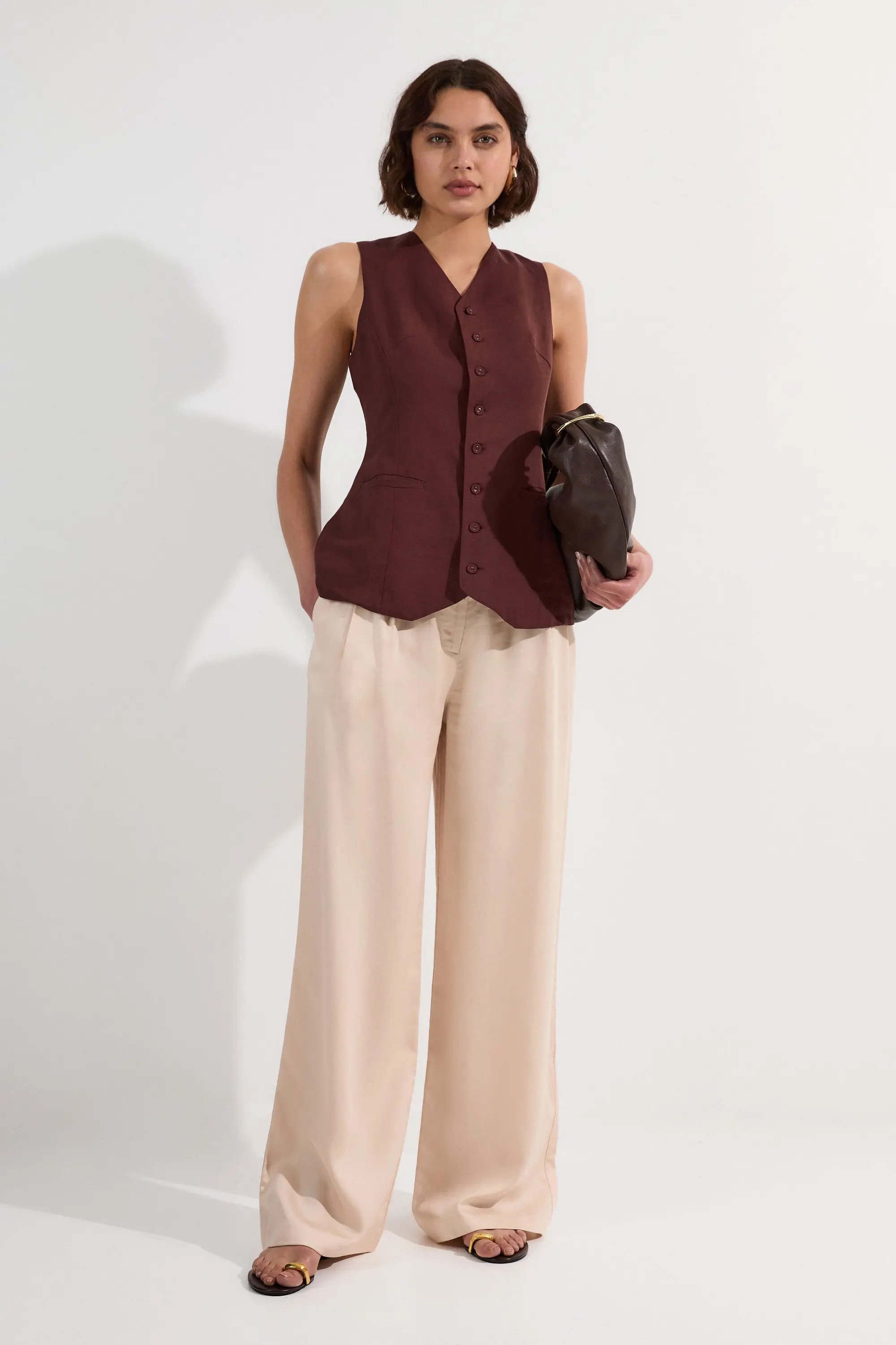 Premium Linen Wide Leg Tailored Trouser - Neutral