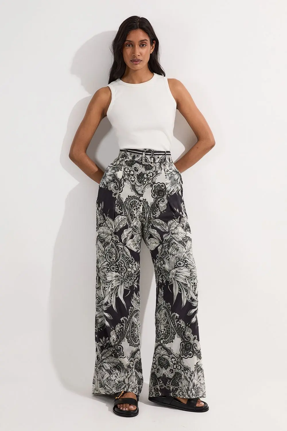 Tall Tile Silk Cotton Woven High Waisted Trouser - Mono - These statement Karen Millen trousers combine artful design with exceptional comfort. The high-waisted silhouette creates a polished profile, while the wide-leg cut delivers dramatic flair with every step. Perfect for occasion wear, pair with a crisp sleeveless top as shown for sophisticated summer events, or style with a tailored blazer and court shoes for formal gatherings. The botanical print makes these trousers versatile enough to transition from daytime garden parties to evening soirees. The silk-cotton blend ensures these trousers drape beautifully while maintaining their structure, offering both comfort and elegance. A true wardrobe investment piece that will command attention at any special event. Luxurious silk-cotton blend fabric with intricate tile pattern design High-waisted silhouette for a flattering, elongated look Wide leg cut offering elegant movement and contemporary shape Side pockets for practical functionality Striking botanical print that creates visual interest and sophistication