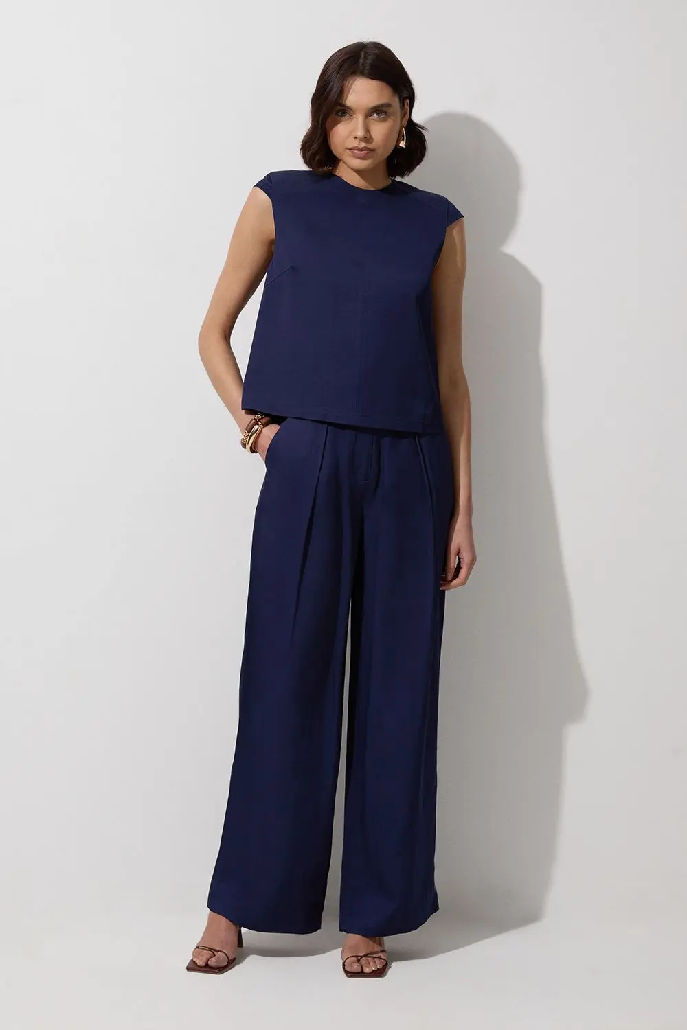 Tailored Viscose Linen Wide Leg Trouser - Navy
