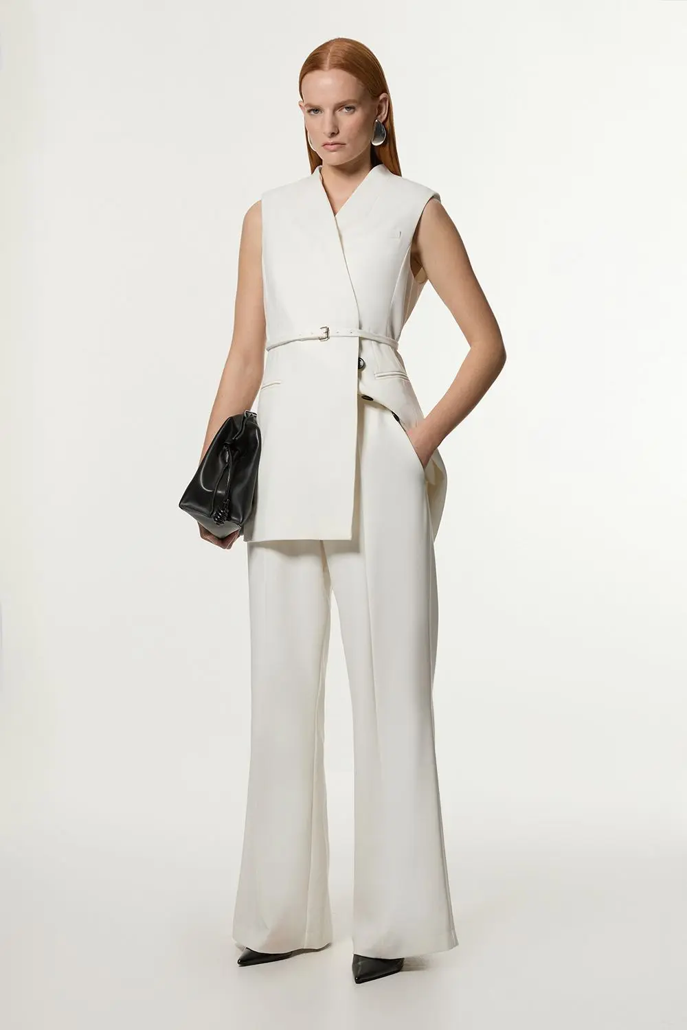 Compact Stretch Tailored Straight Leg Trouser - Ivory - Experience sleek tailoring in a pair of straight leg trousers, with a flattering, relaxed fit and a comfortable high waistline. Style it with the matching waistcoat for a co-ordinating look, or with a knit jumper and boots for a more laid back approach. Compact Stretch Tailored Straight Leg Trouser High Quality Tailored Design Comfortable High Waistline Flattering Straight Leg Fit Pocket Accents Matching Waistcoat Sold SeparatelyShop this seasons straight leg trousers or browse the full collection of women's trousers now.