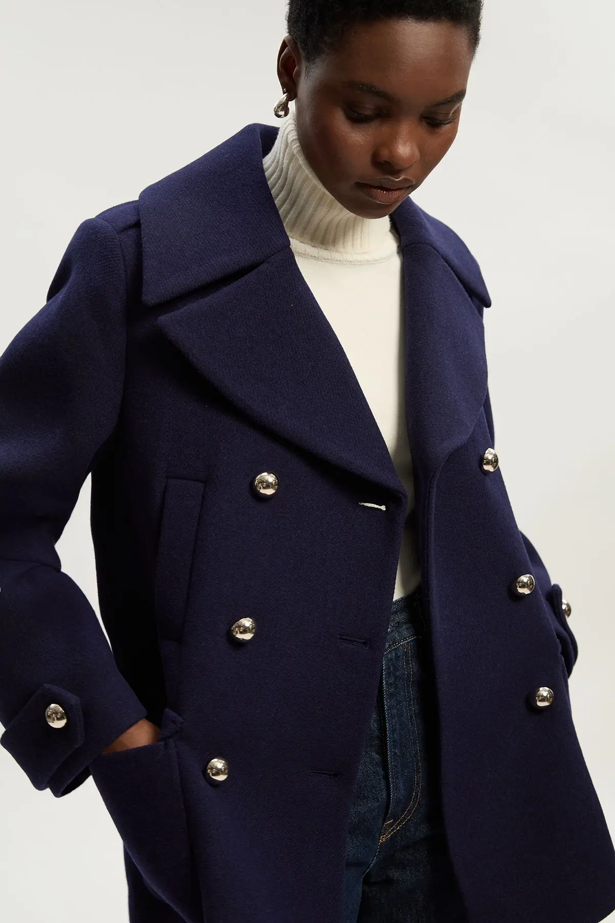 Wool Patch Pocket Tailored Short Coat - Navy - Wool Patch Pocket Tailored Short Coat