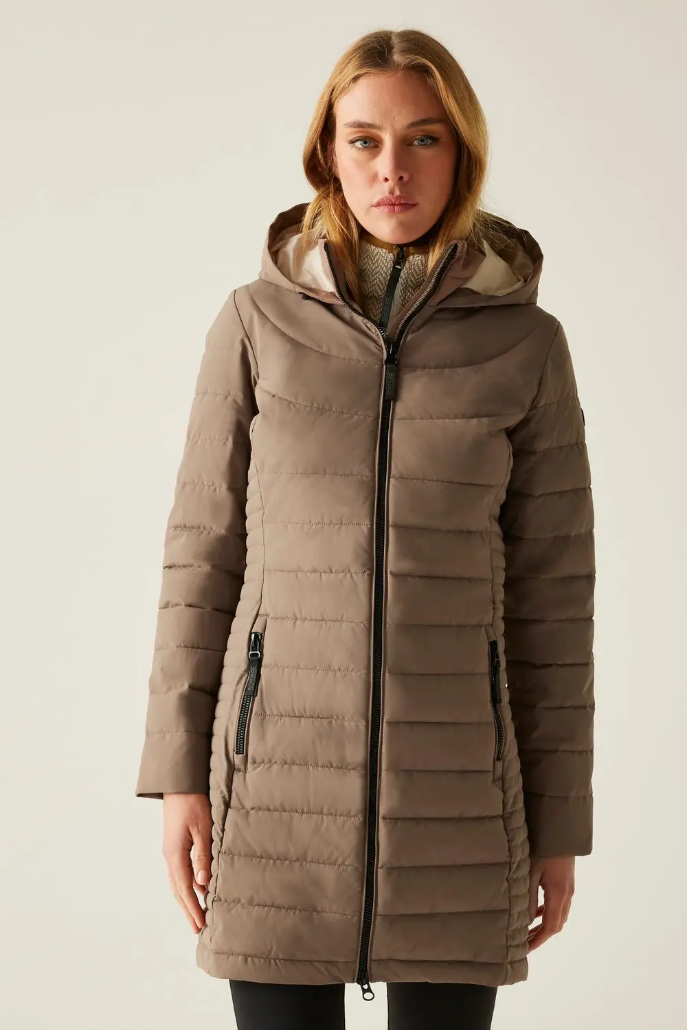 Regatta Women's Andria Hooded Water-Repellent Insulating Baffled Jacket in Brown | Size: 14