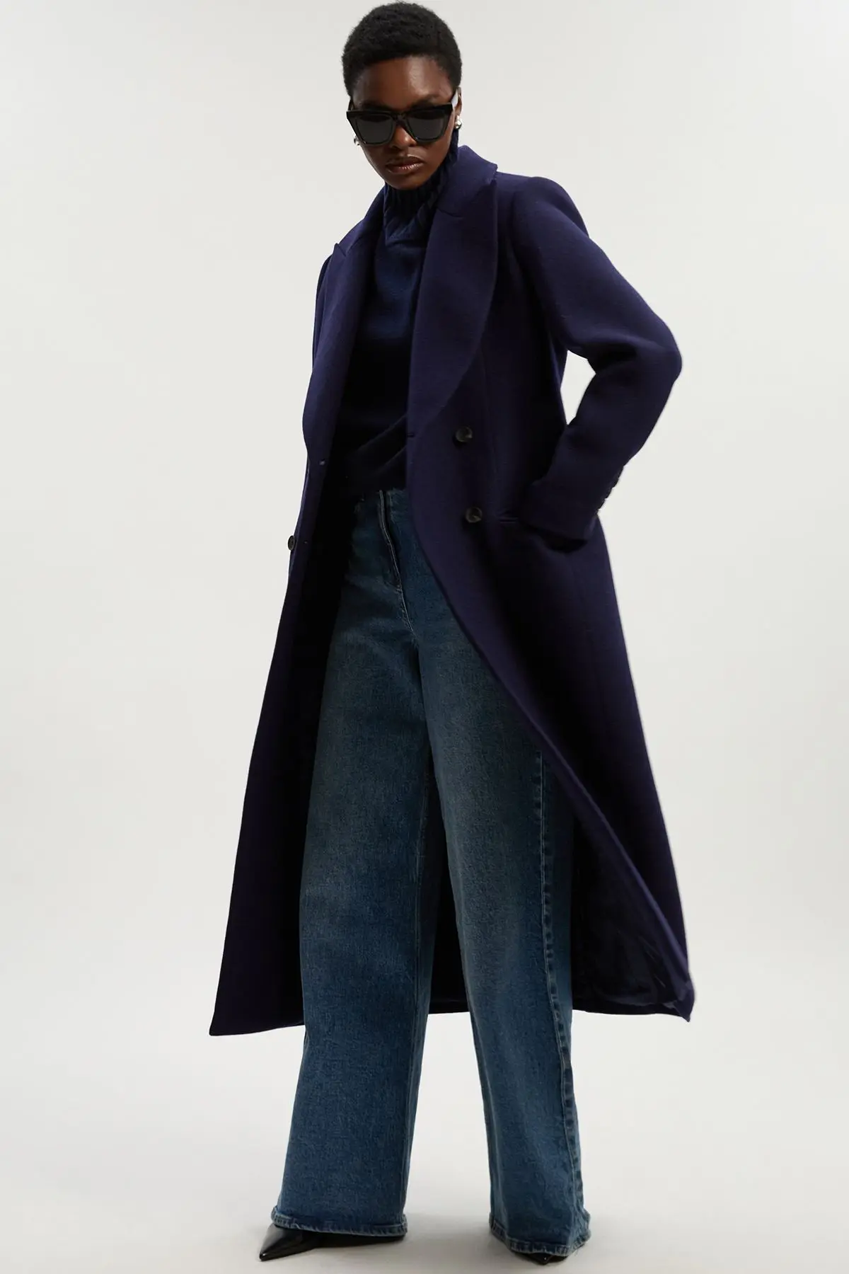 Petite Wool Double Breasted Tailored Midi Coat - Navy