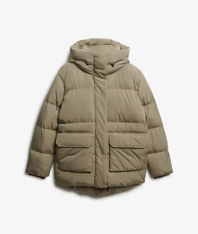 Relaxed fit - the classic Superdry fit. Not too slim, not too loose, just right. Go for your normal size Durable water repellency - This fabric has been coated with an advanced water-resistant finish Hooded with a second collar and a bungee adjustable hood Zip and popper fastening with four external pockets Ribbed cuffs and padding throughout Signature tab on the back and badge on the sleeve The Short Duvet Puffer Jacket is a gorgeous way to stay comfortable this season. Designed with luxurious padding throughout and minimal branding, the jacket is an elevated everyday essential. We've finished it with a DWR coating, making it perfect for daily wear; you'll be cosy and warm every time you style it.