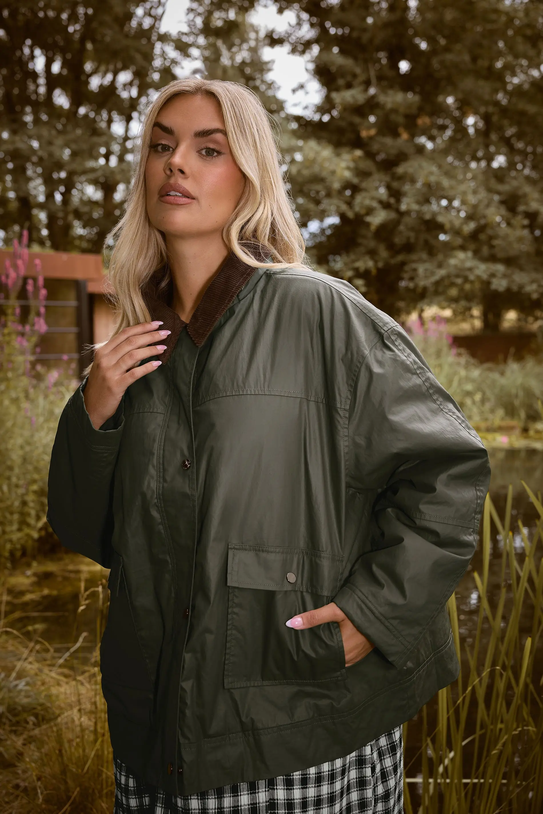 Yours Curve Green Waxed Parka Jacket, Women's Curve & Plus Size, Yours