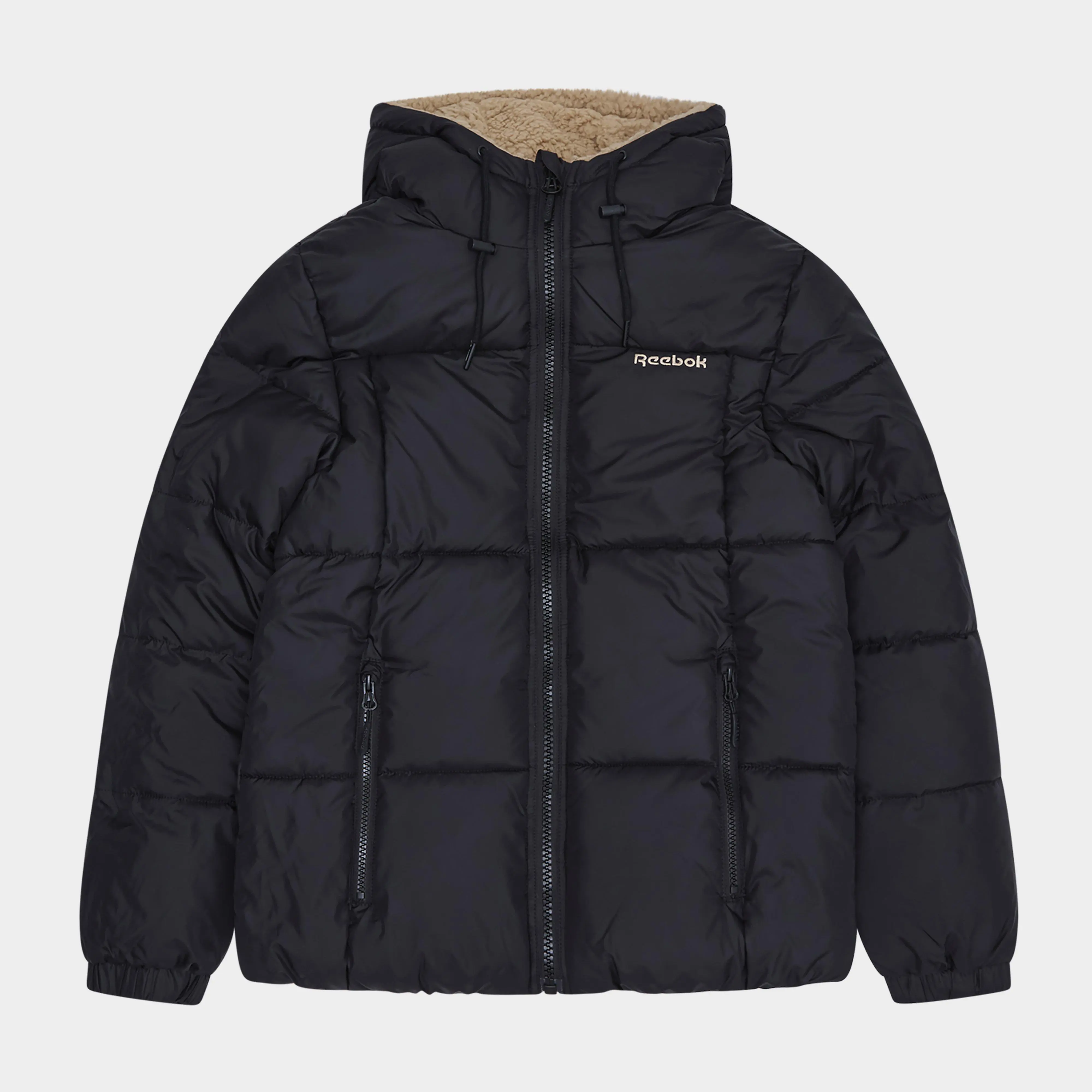 This reversible puffer jacket offers two distinct styles in one functional design. On one side, it features a smooth, quilted outer shell built to shield against wind, complete with an insulated core and zippered pockets. Flip it over and you've got a plush sherpa finish that adds warmth and a relaxed, textured look. The adjustable hood and full zip closure remain consistent on both sides, ensuring you don't compromise on comfort or protection. Designed for everyday flexibility, it adapts to changing temperatures and preferences with ease. Branded details appear on both surfaces, lending subtle identity whichever way it's worn. Ideal for colder days when versatility and function are key, this piece layers easily over casual fits and stands up to seasonal shifts.