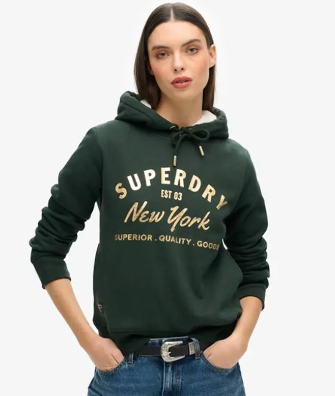 Superdry Women's Luxe Metallic Logo Hoodie Green / Academy Dark Green -