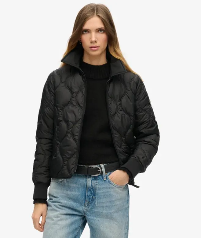 Superdry Ladies Lightweight Quilted Studios Cropped Liner Jacket, Black,