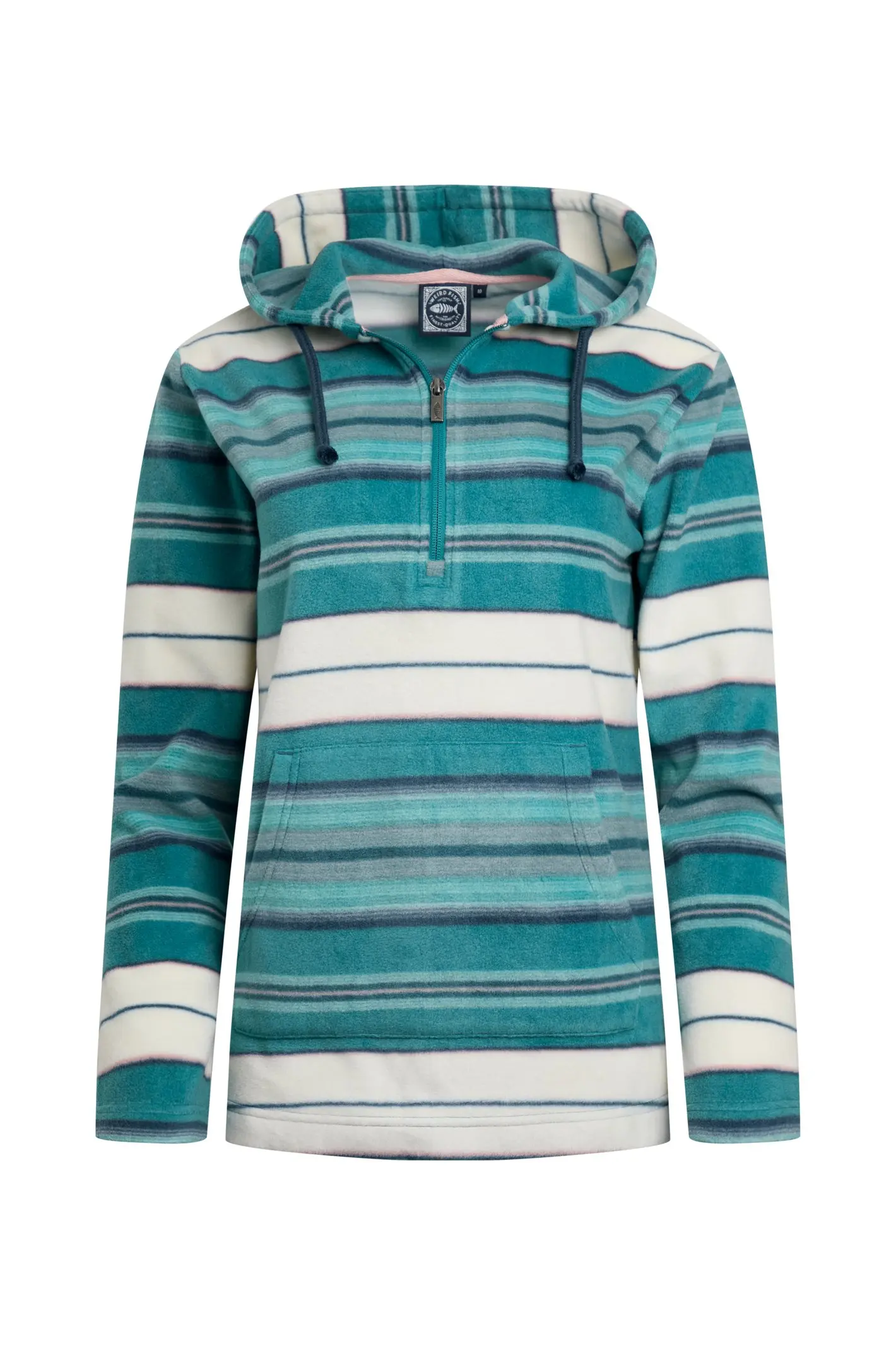 Weird Fish Lana 1/4 Zip Stripe Microfleece Hoodie Lagoon Blue