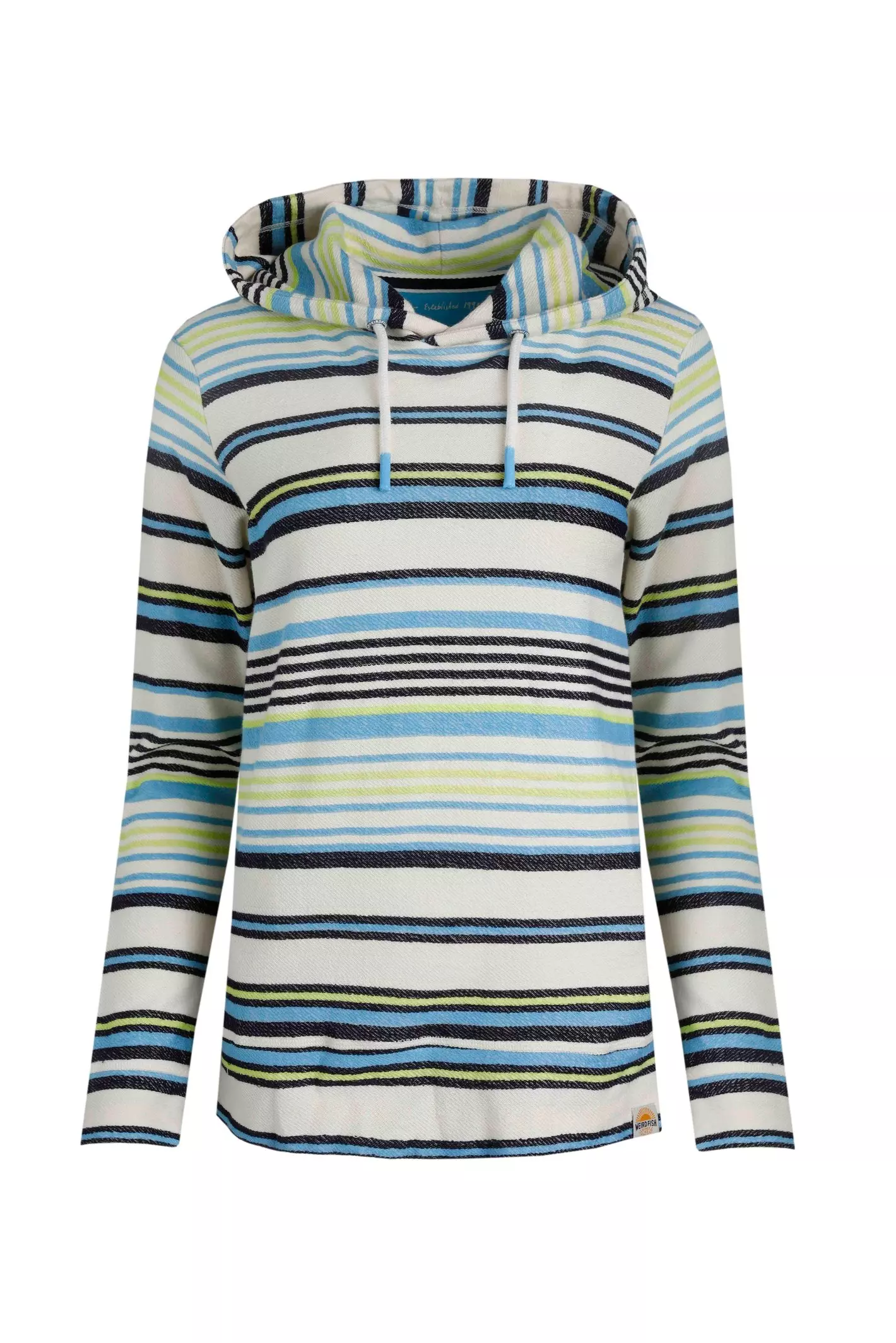 Weird Fish Serrin Organic Cotton Stripe Hoodie Blue Surf