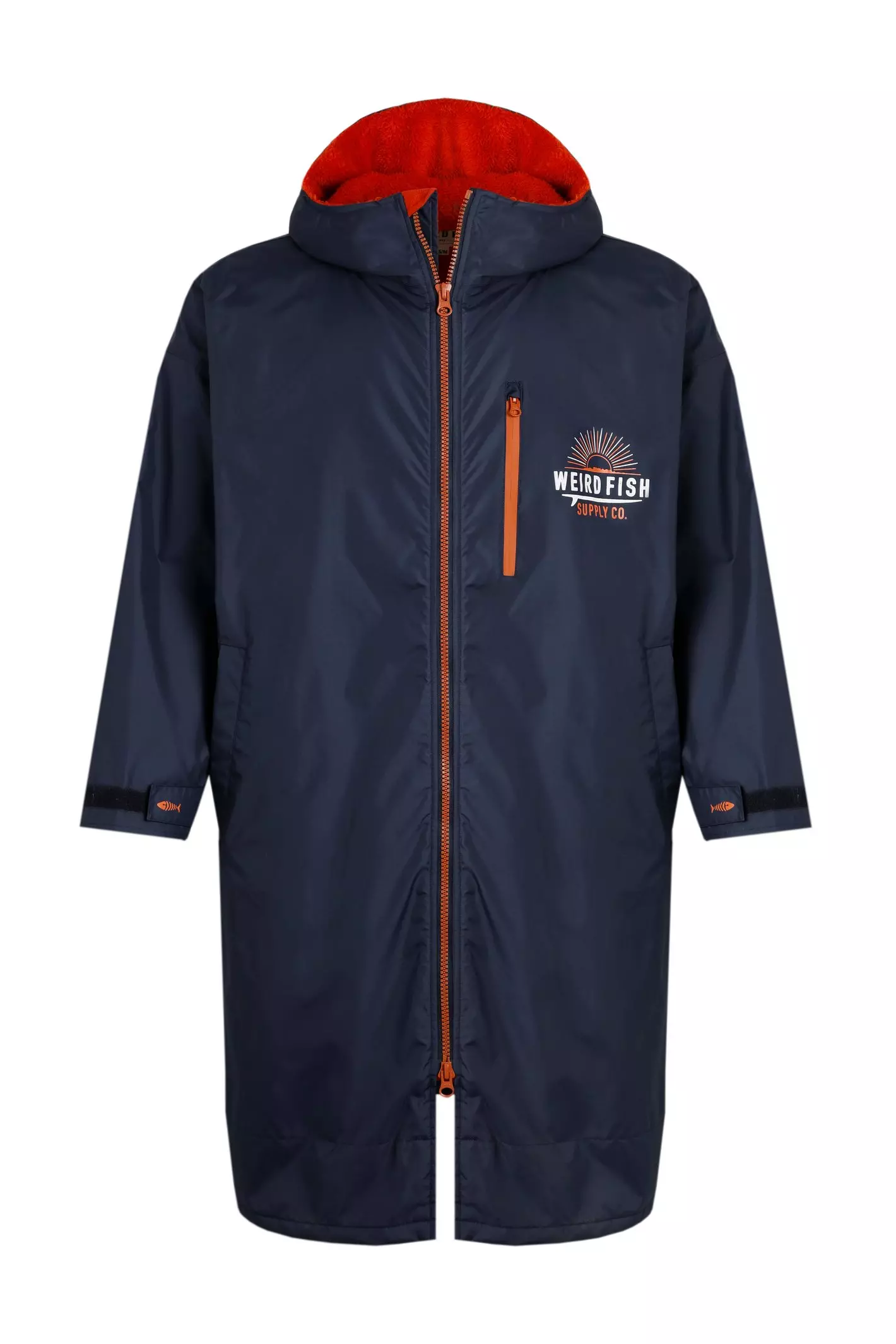Whether you are an avid wild swimmer an early morning lido dipper or a dog walking in the rain kind of person the Atlantic unisex waterproof changing robe is an asset to your outerwear arsenal. The outer is waterproof with a large hood the lining is really soft and fluffy fleece it has deep hand pockets a zipped chest pocket and a double ended zip. The great features don't stop there! It also a unisex fit has Velcro adjustable cuffs and a large print on the back. If you are anything like us you will be wearing this bad boy everywhere!Waterproof outerSoft Sherpa fleece liningDouble ended zipZipped chest pocketVelcro adjustable cuffsFleece lined hand pocketsOuter: 100% Polyamide Lining: 100% Polyester30° Machine Wash