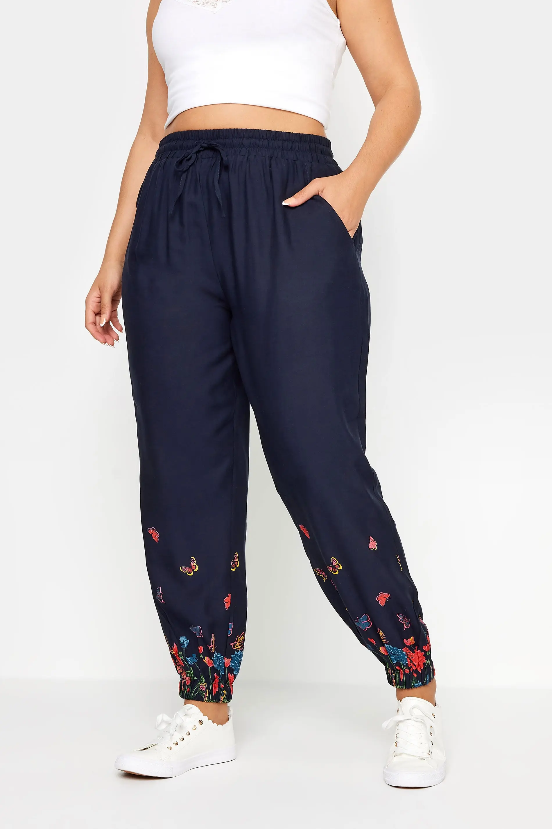 Yours Plus Size Navy Blue Butterfly Print Border Joggers Size 20