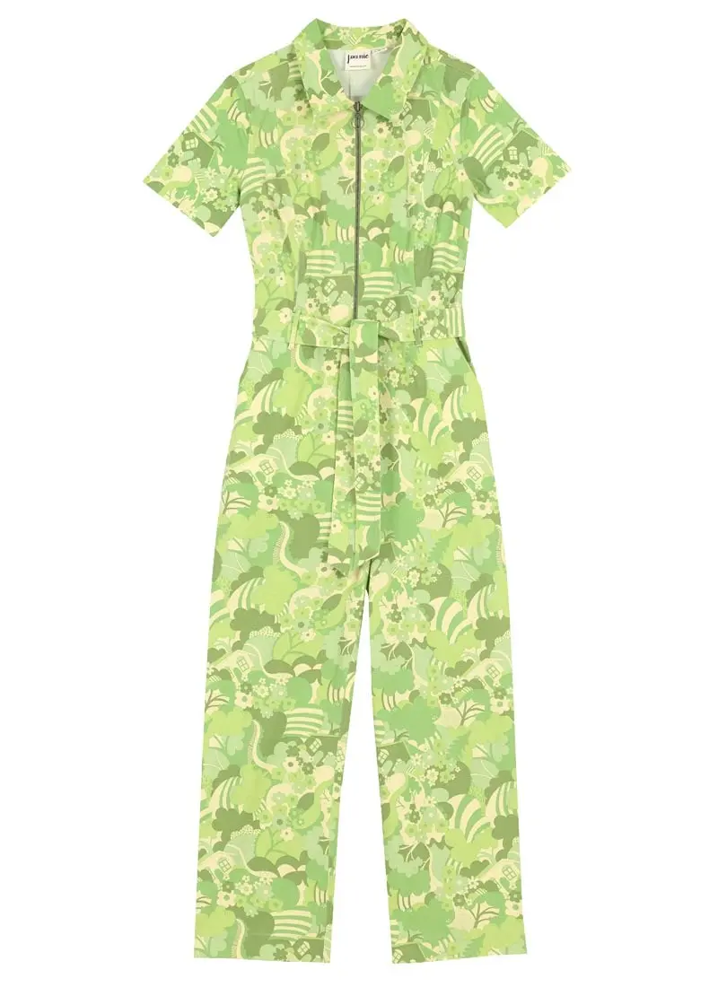 Mork’s here in a brand-new print that’s bound to make the rest of your wardrobe green with envy! Our bestselling vintage-inspired boilersuit is back, crafted from soft and slightly stretchy denim in an all-over green mid-century floral print. Featuring a classic collar leading to a zip-through front, short sleeves, a removable matching belt, and pockets to the front and rear, Mork is equal parts practical and cool. Grace is 5'7 and is wearing a UK size 10Ivy is 5'11 and is wearing a UK size 10Regular fit - take your usual sizeInside leg length: 68cmAll-over green mid-century floral printClassic collarZip-through front fasteningShort sleevesRemovable matching beltPocketsFor specific measurements of this garment, please see the Size Guide.
