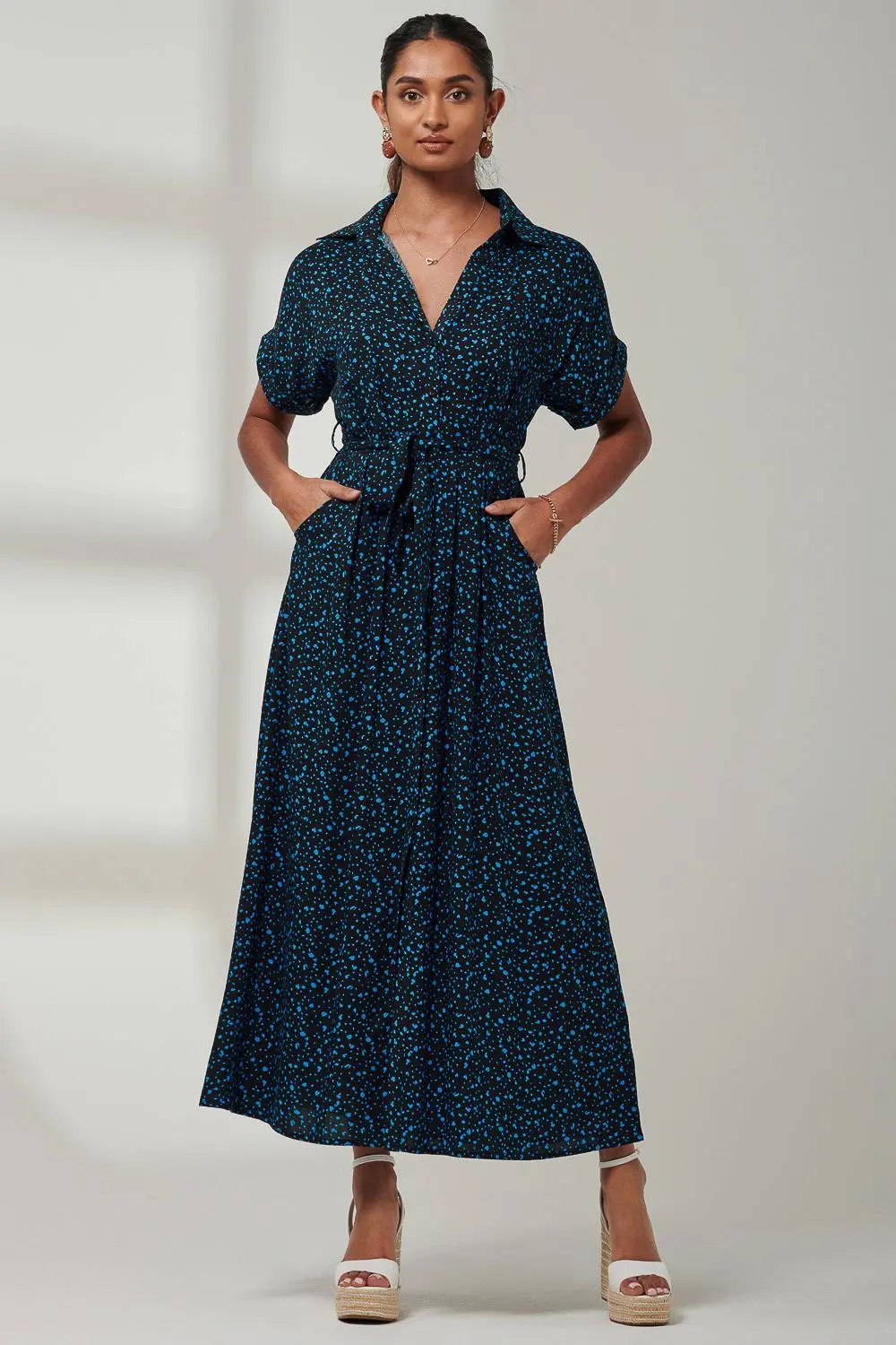 Add a chic and smart edge to your wardrobe this season with the Drop Shoulder Shirt Maxi Dress from Jolie Moi. This statement piece is framed by a smart shirt collar, short folded sleeves, a self-tie belt, and button fastening front. Style with your desired pair of heels or flat sandals.