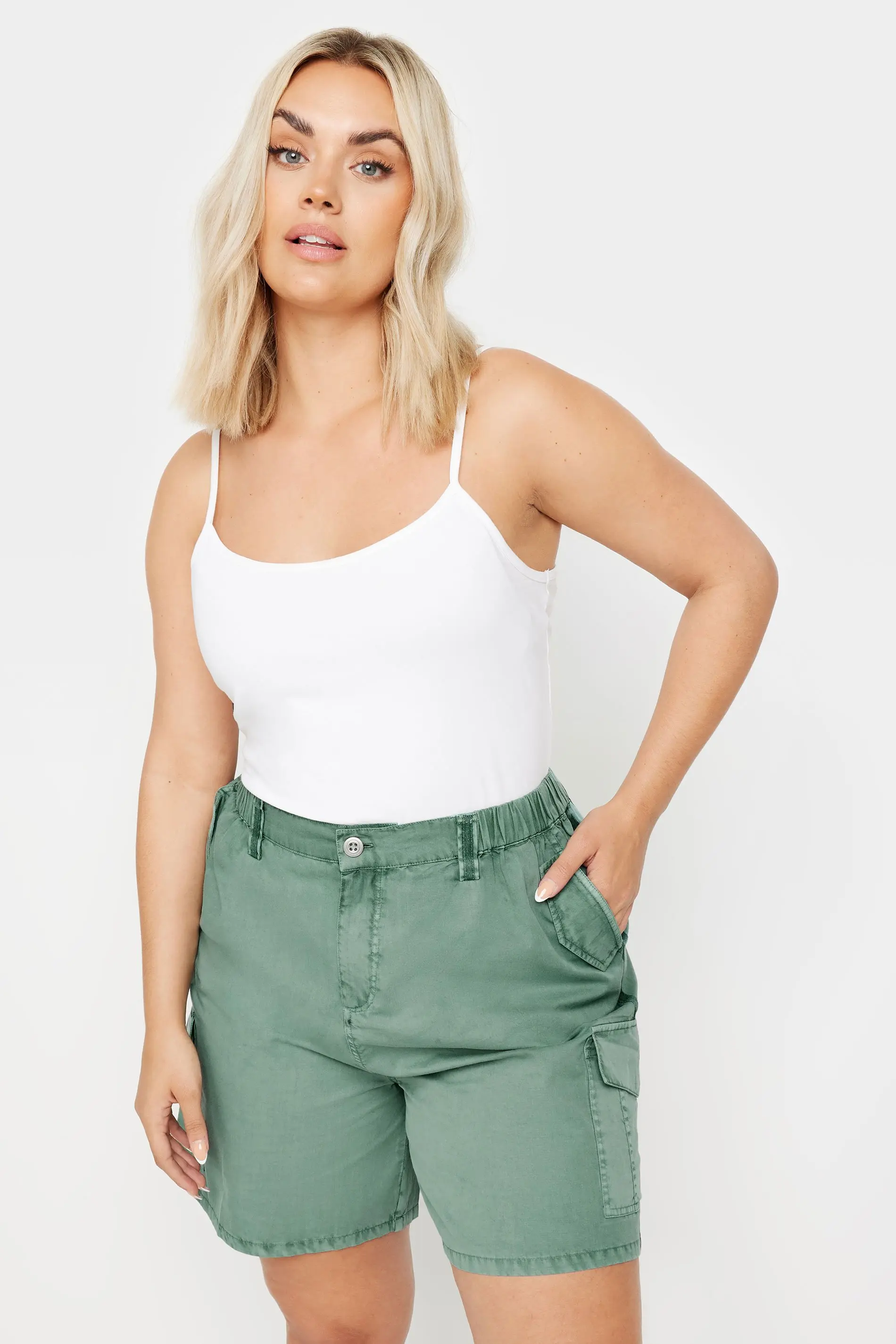 Yours Plus Size Sage Green Cotton Cargo Shorts Size 28