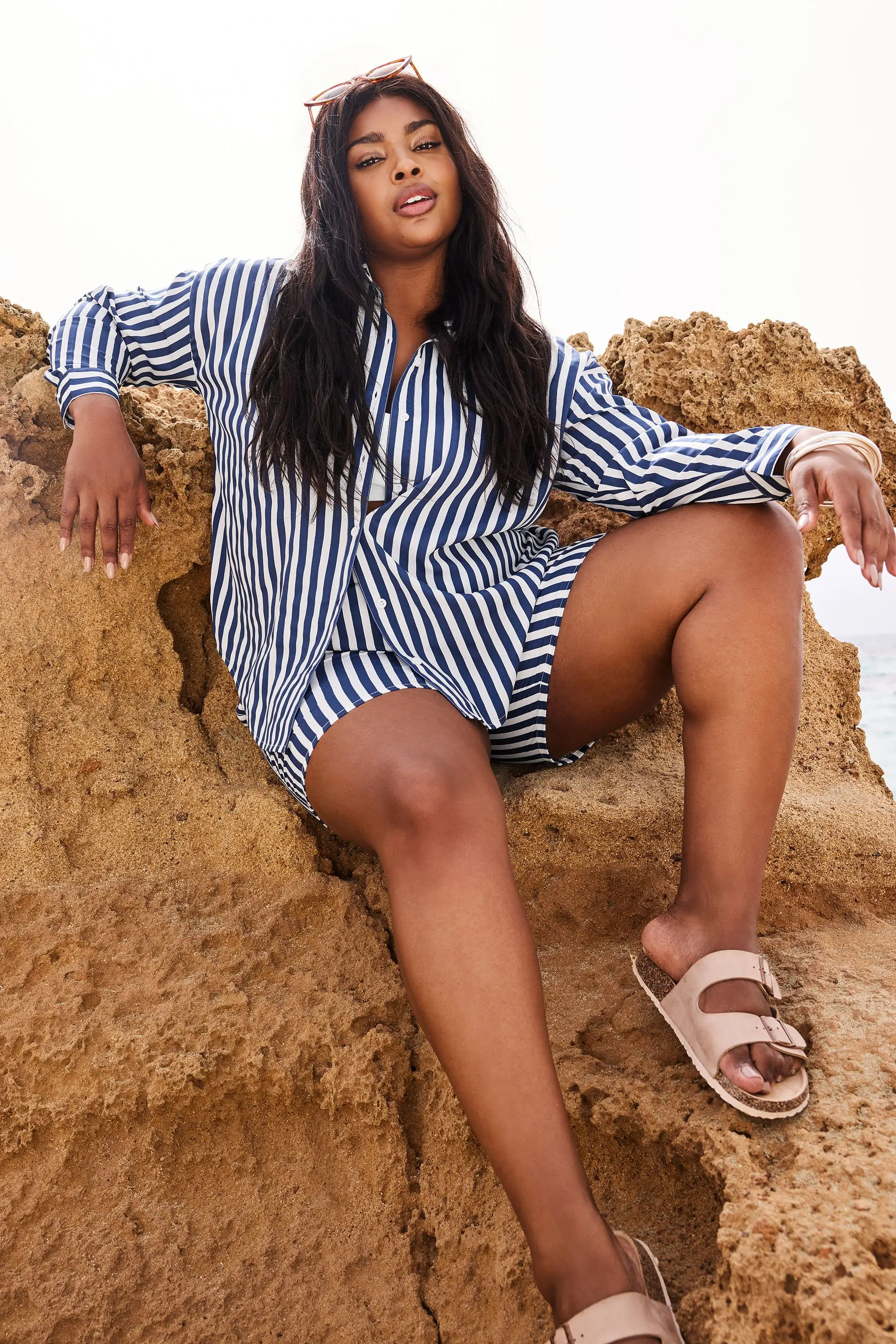 Yours Plus Size Blue Stripe Print Shorts Size 30-32