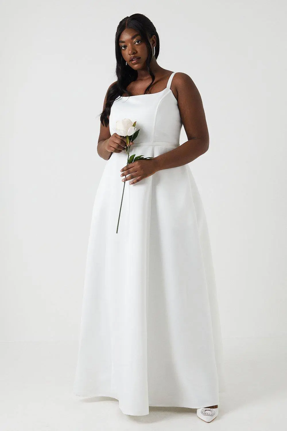 Plus Size Structured Satin Full Skirt Wedding Dress