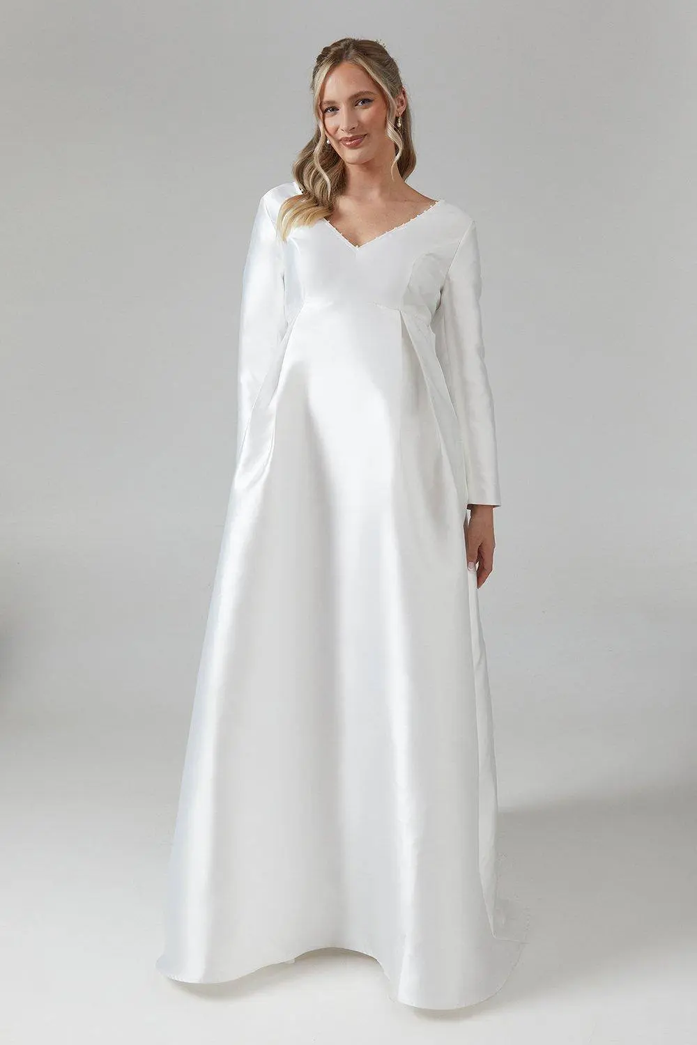 Maternity Faux Pearl Detail Twill Wedding Dress