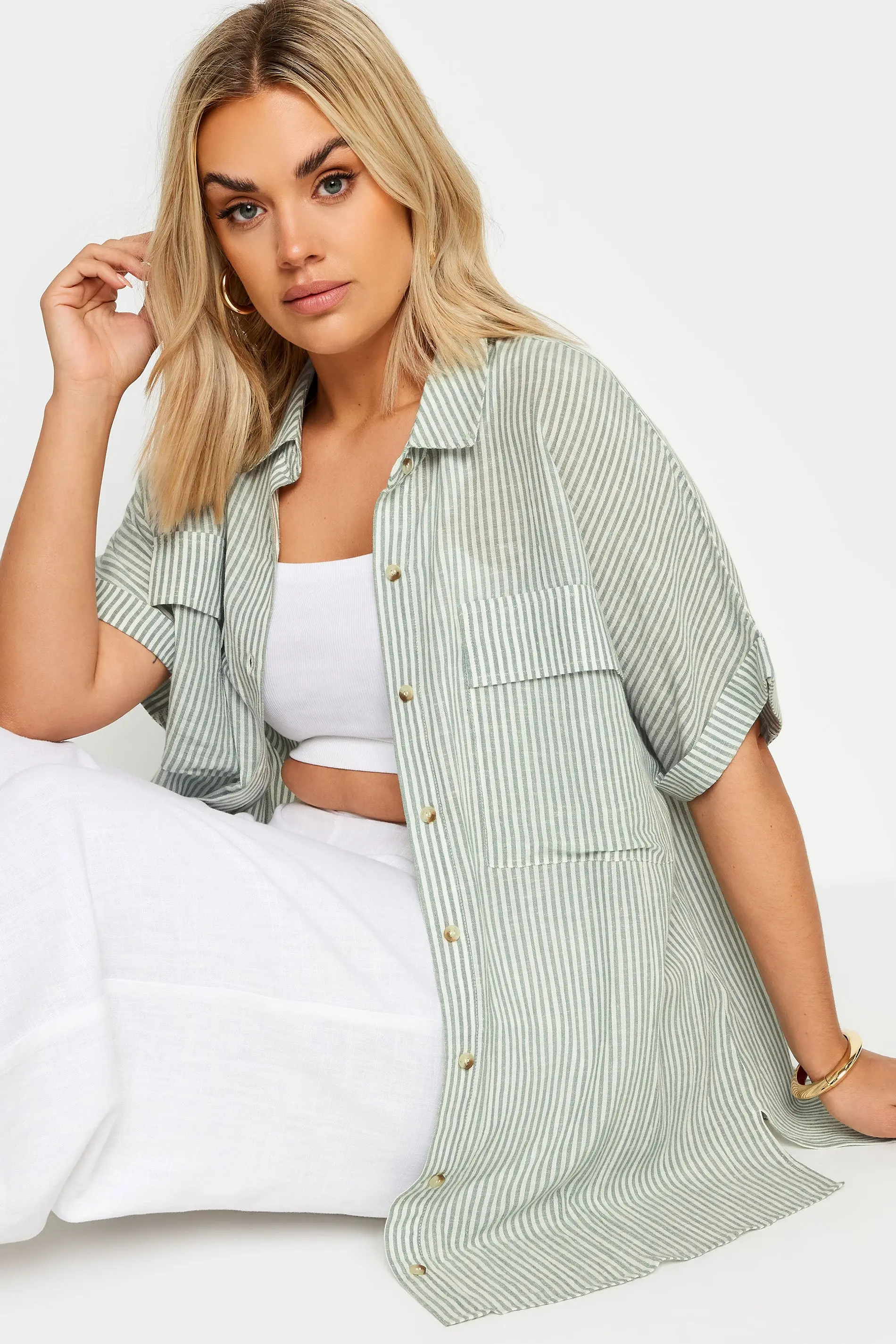Yours Plus Size Sage Green Stripe Linen Shirt Size 38-40