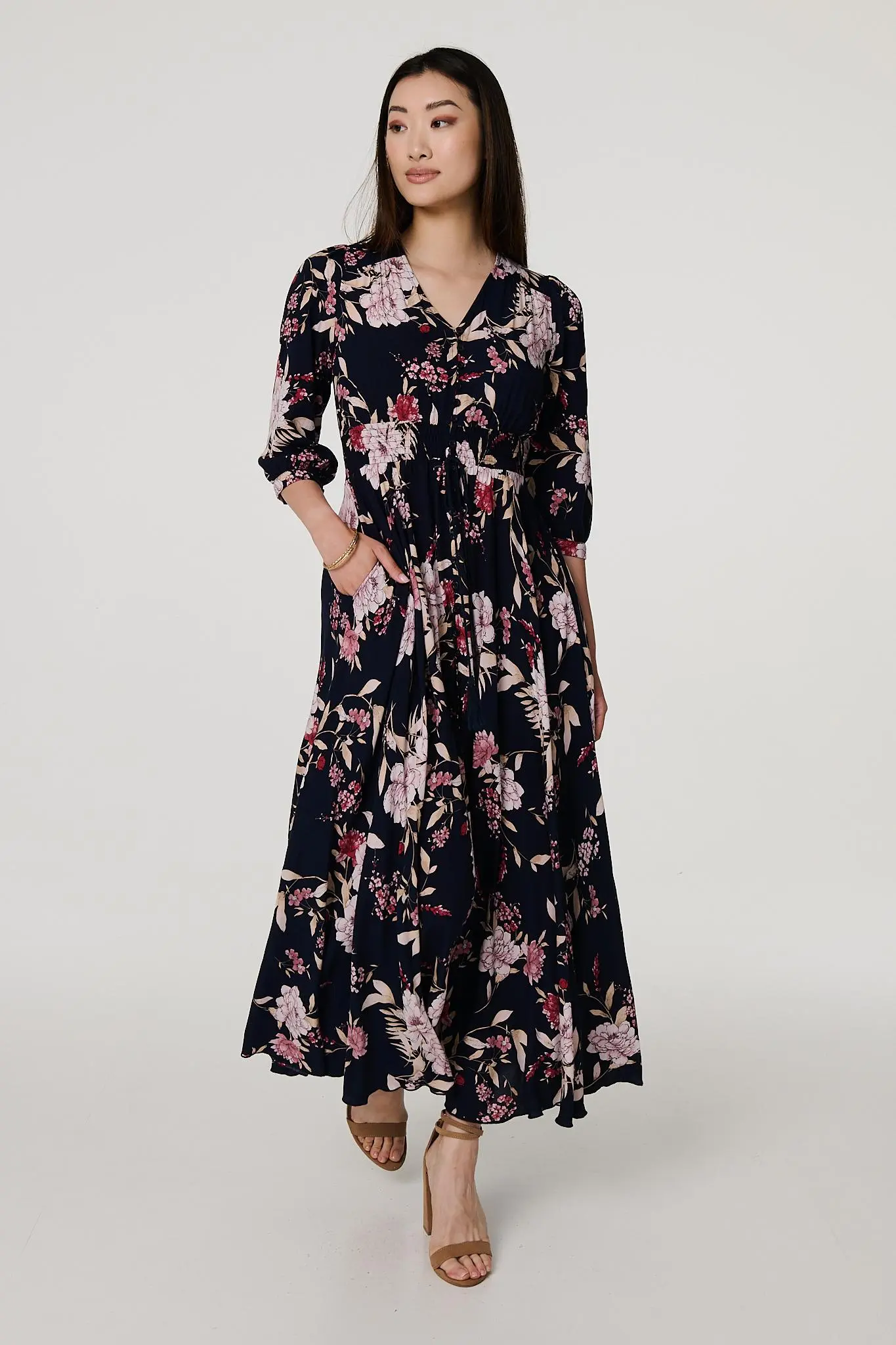 Floral 3/4 Sleeve A-Line Maxi Dress