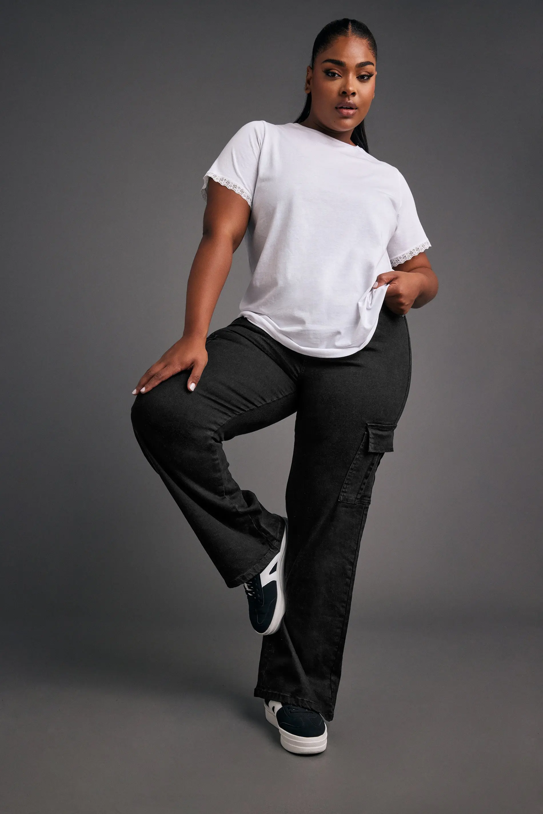 Yours Plus Size Black Cargo Jeans Size 34-36