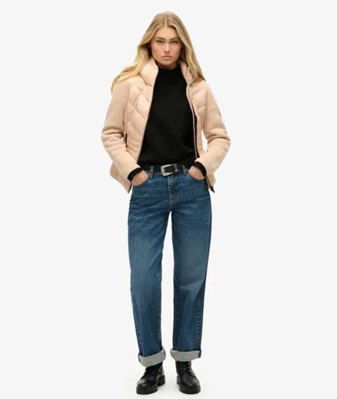 Superdry Women's Hooded Storm Knit Hybrid Jacket Beige / Frappe Beige -