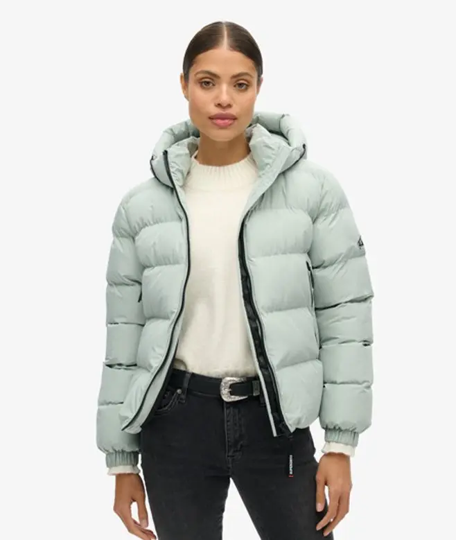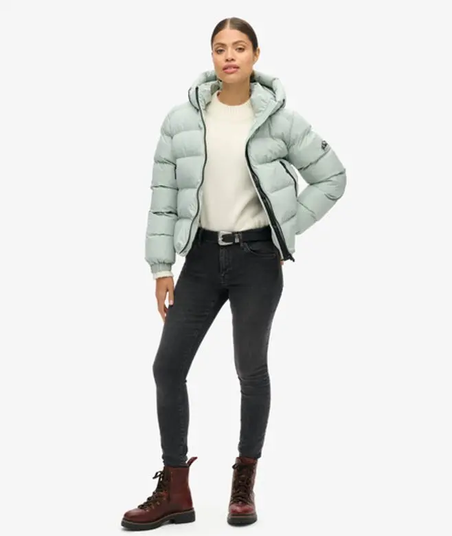 Superdry Women's Hooded Sports Puffer Jacket Light Grey / Puritan Grey -