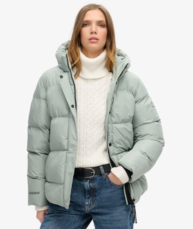 Superdry Ladies Classic Hooded Five Baffle Sports Puffer Jacket, Light Grey,
