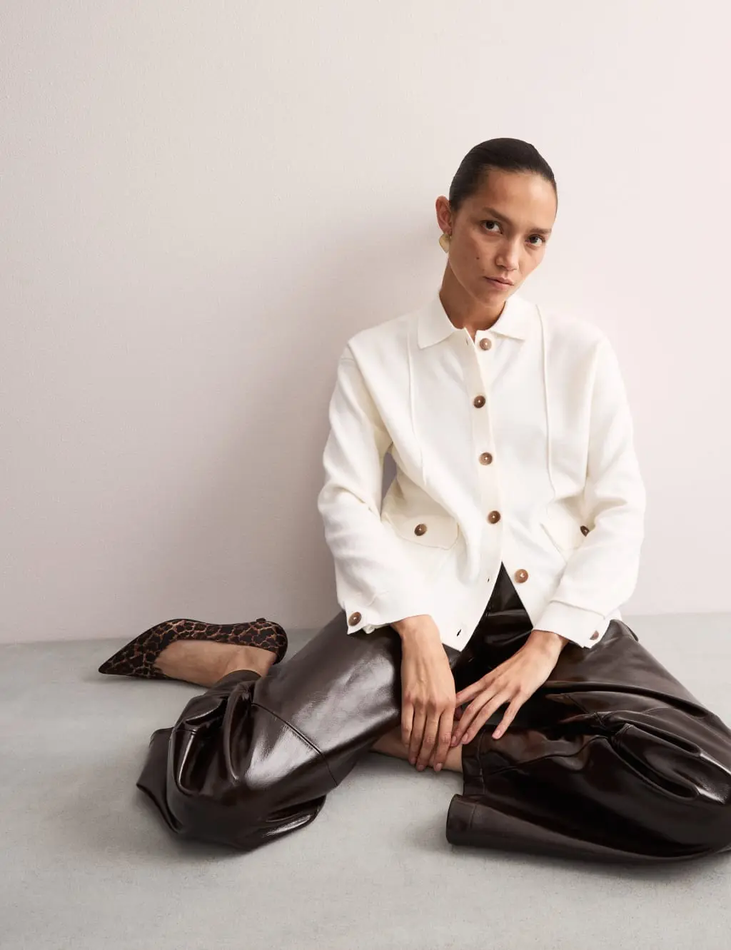 JAEGER Pure Merino Wool Knitted Jacket Ivory