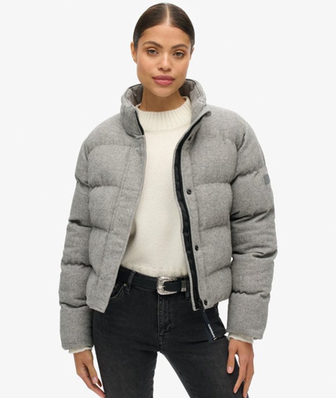 Superdry Women's Tweed Puffer Boxy Jacket Grey / Grey Marl -