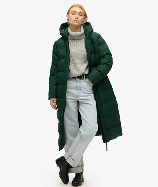 Superdry Women's Tweed Longline Puffer Coat Green / Enamel Green -