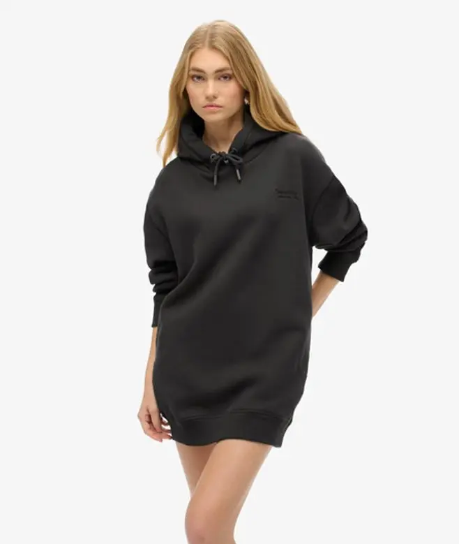 The perfect autumnal match. Crafted with a lightly brushed lining and a thigh-high cut, this Essential Hoodie Dress is ideal for dressing up or staying stylish on chill days. Loose Fit - where comfort meets cool, a stylish loose cut makes this a must-have shape Hooded with adjustable drawstrings Dropped shoulders Thigh length Two external side pockets Lightly brushed lining Superdry embroidered stitching Sewn-in Superdry tag on the side UK 6-8, US 2-4, EU 34-36 UK 10-12, US 6-8, EU 38-40 UK 14-16, US 10-12, EU 42-44