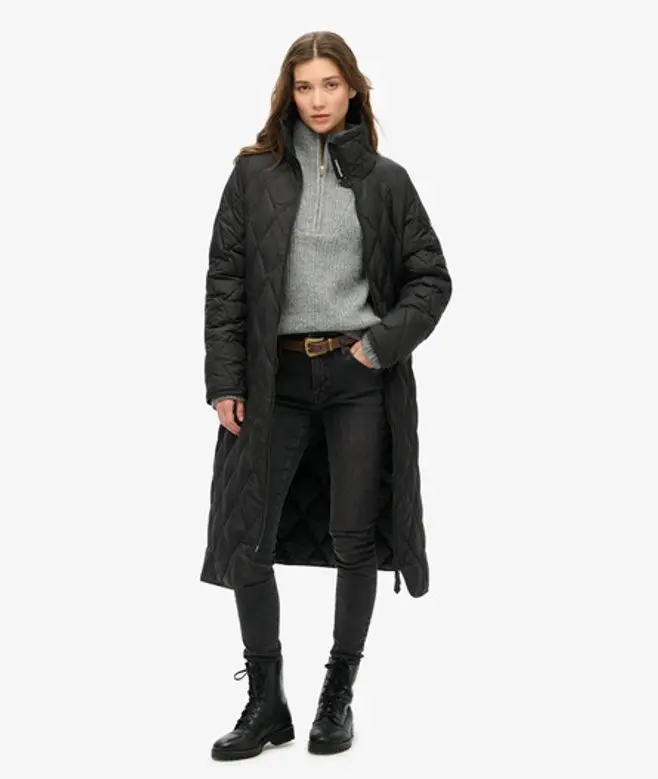 Superdry Women's Classic Quilted SuperLong Coat, Black,