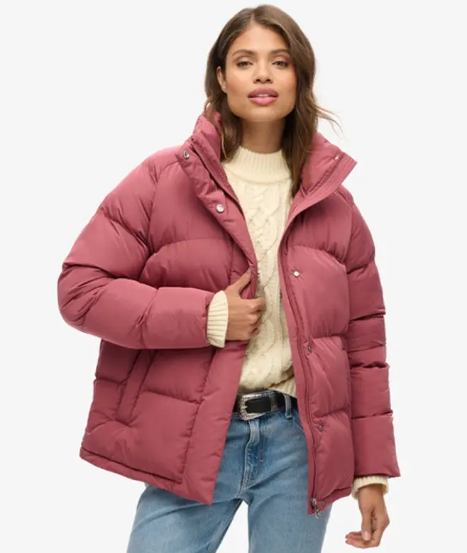 Superdry Women's Mid Length Puffer Jacket Pink / Roan Rouge Burgundy -