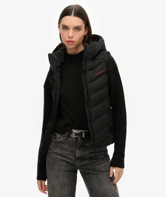 Superdry Women's Lightweight Hooded Microfibre Padded Gilet, Black,
