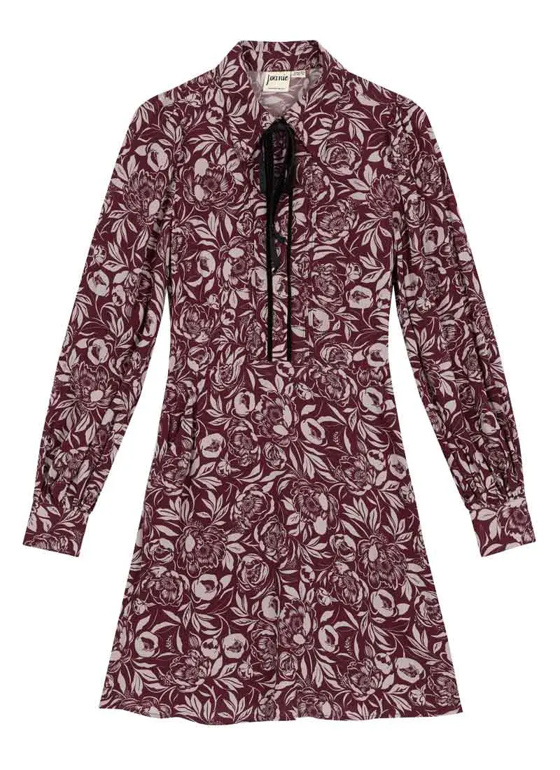 Joanie Clothing Paulina Peony Print Tie Neck Mini Dress