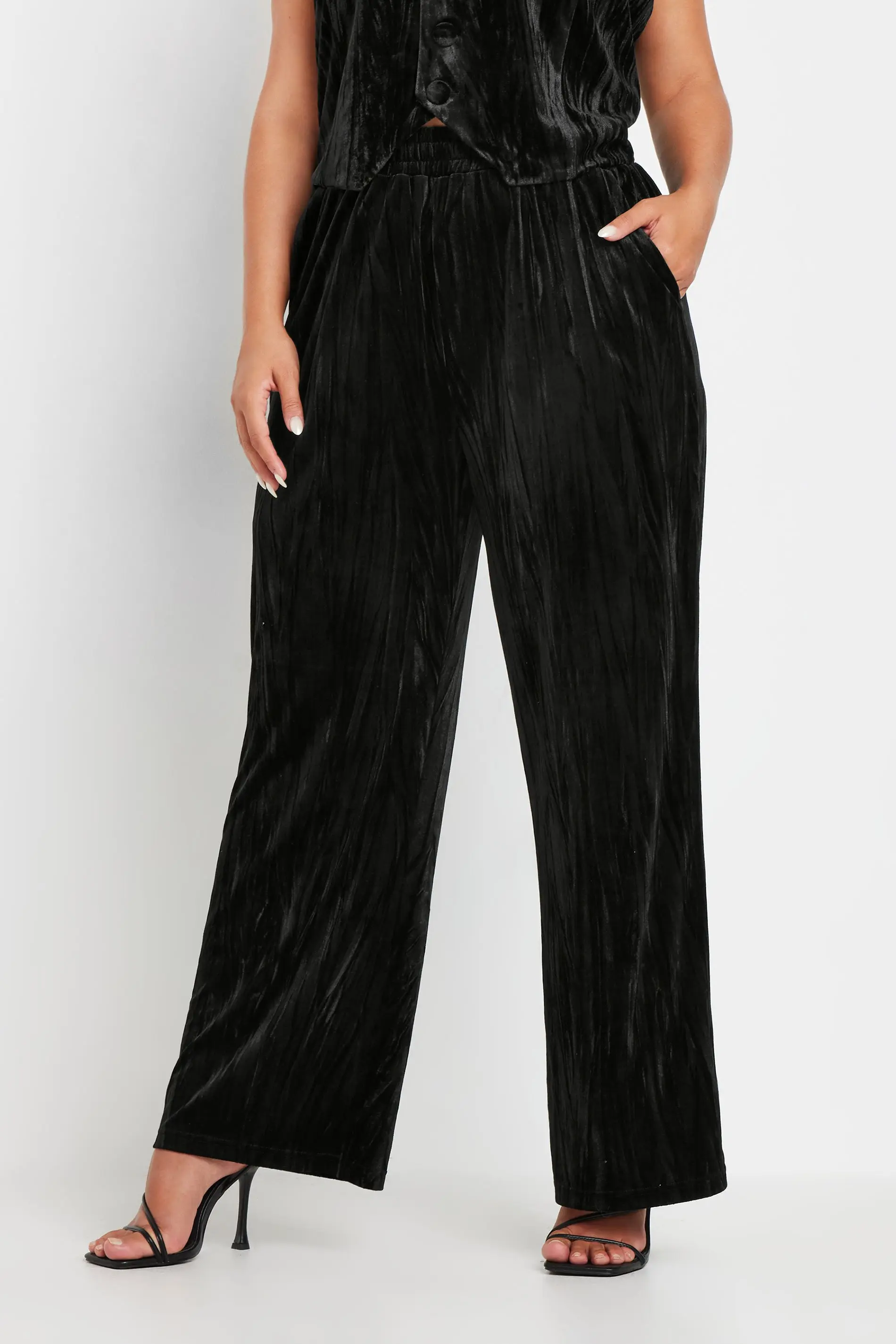 Yours Curve Black Crushed Velvet Wide Leg Trouser, Women's Curve & Plus Size, Yours