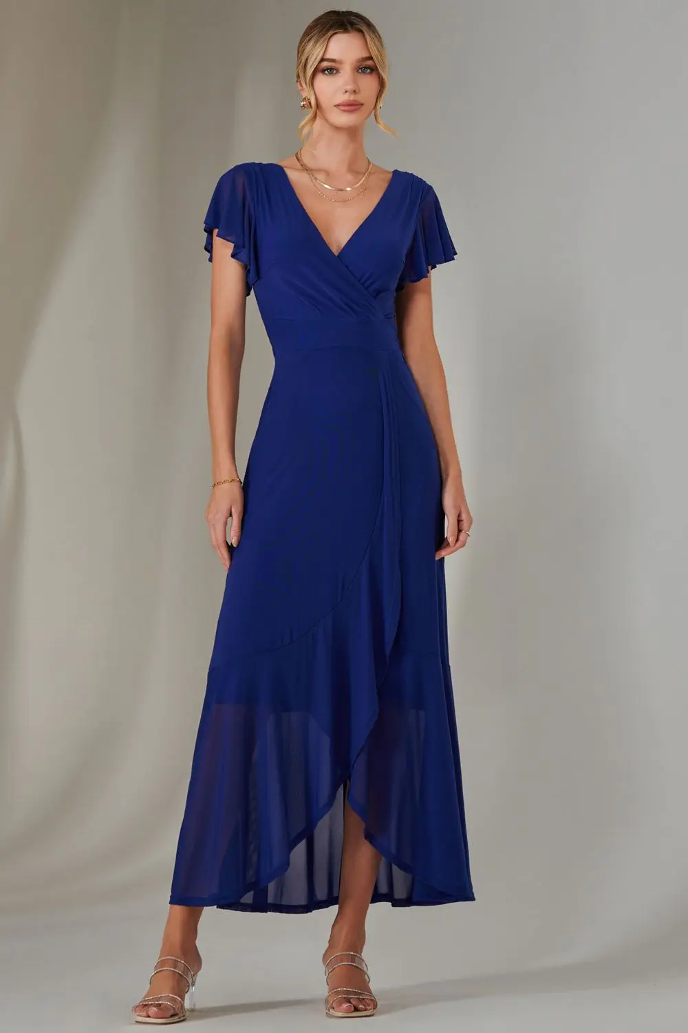 Jolie Moi Women's Plain Wrap Mesh Maxi Dress in Navy