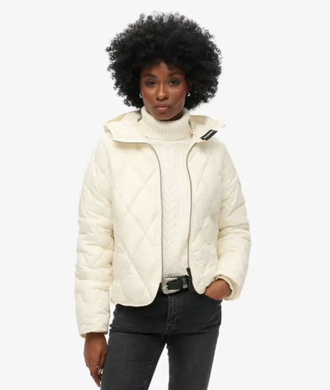 Superdry Women's Hooded Quilted Liner Jacket White / Star White -