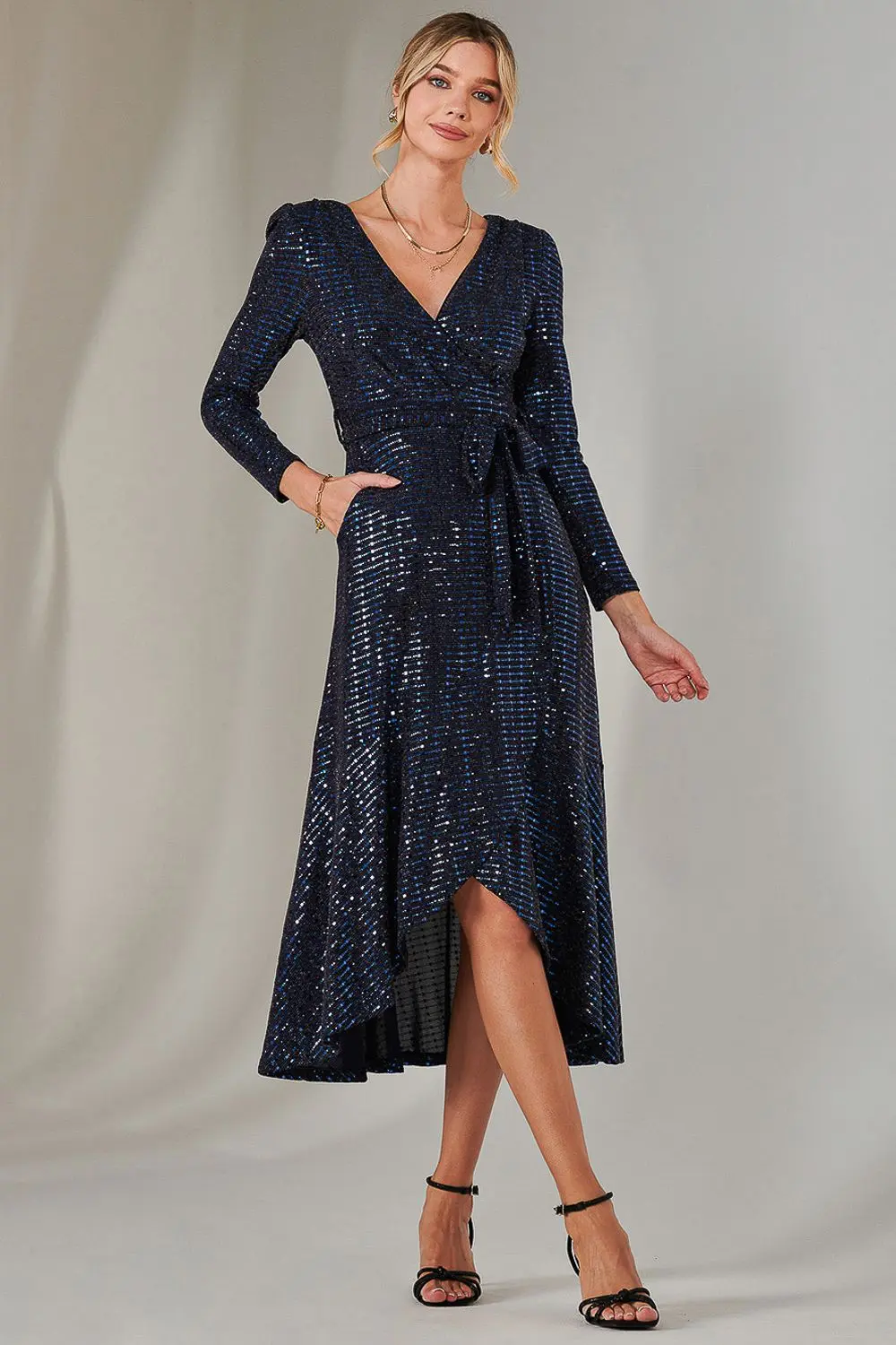 Jolie Moi Women's Long Sleeve Metallic Spot Maxi Dress in Navy