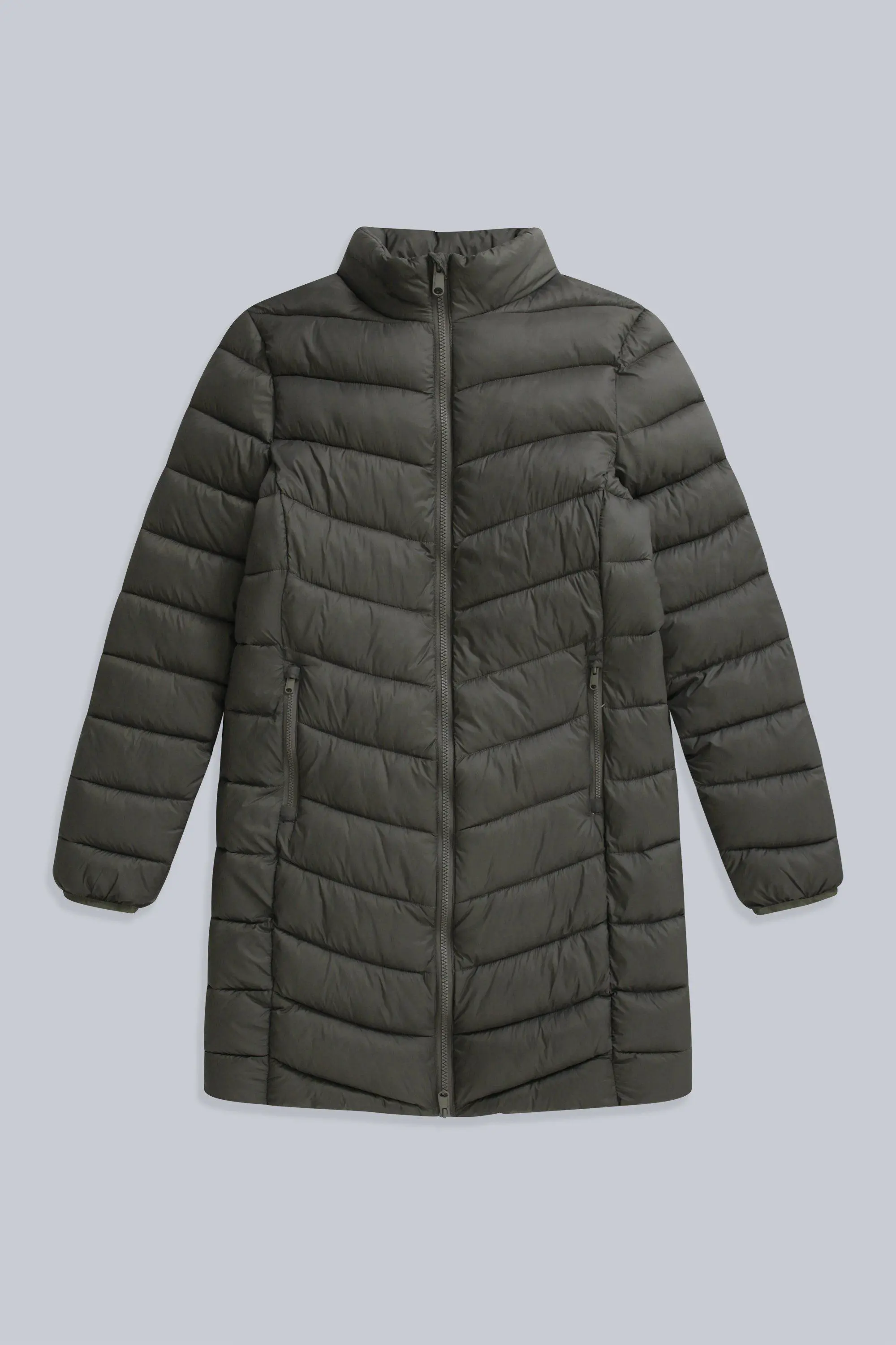 Animal Women's 'Frankie' Water Resistant Cosy Hood Padded Snug Fit Longline Jacket in Olive