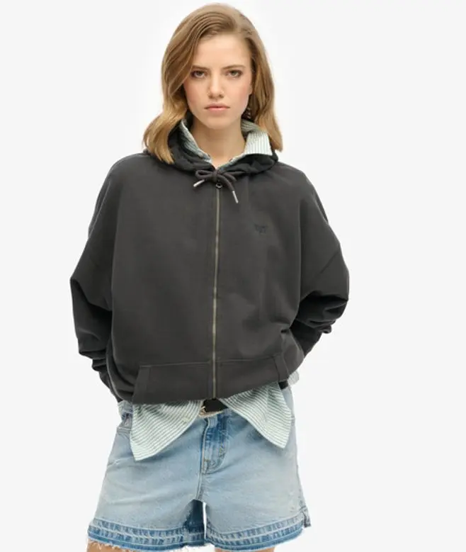 Superdry Women's Studios Zip Hoodie Black / Washed Black -
