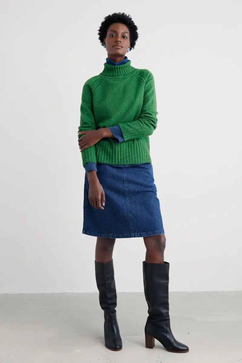 A versatile A-line skirt that falls just above the knee, made from soft organic cotton cord.